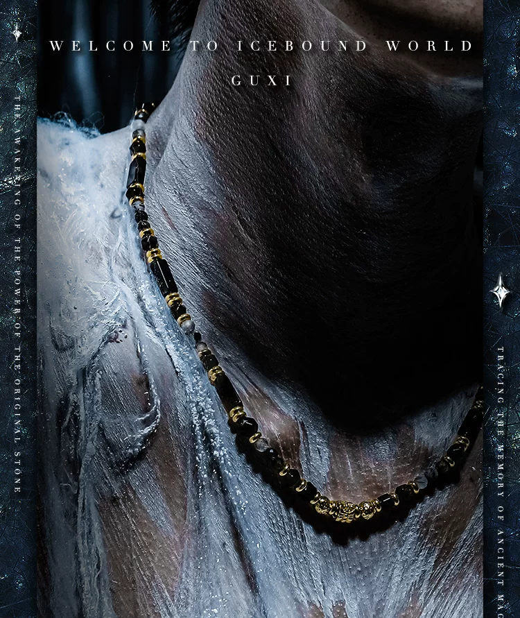 GUXI【遗烬】暗黑风小众设计金黑曜石项链男黑发晶黑玛瑙复古饰品