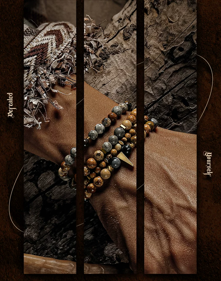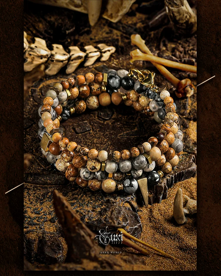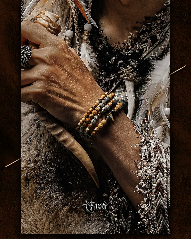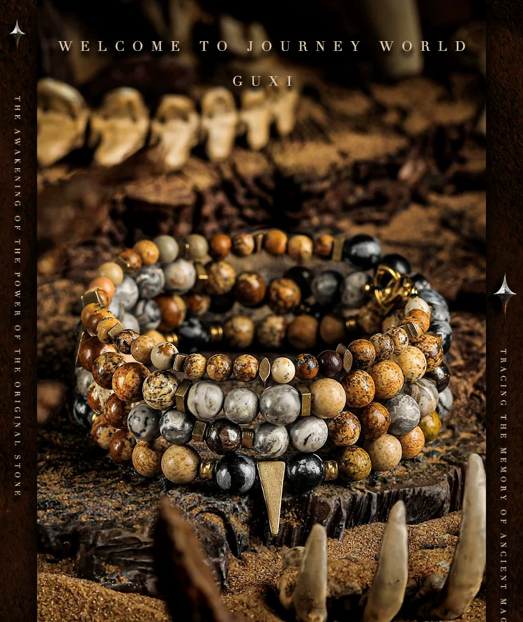 GUXI【遗荒】原创设计图画石手链男生串珠地图石手串叠戴饰品小众
