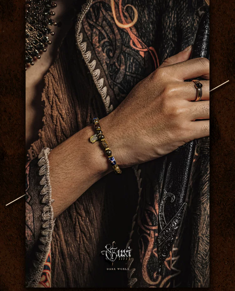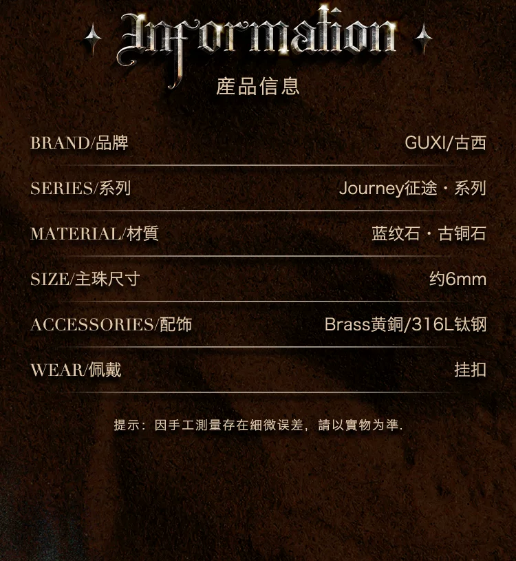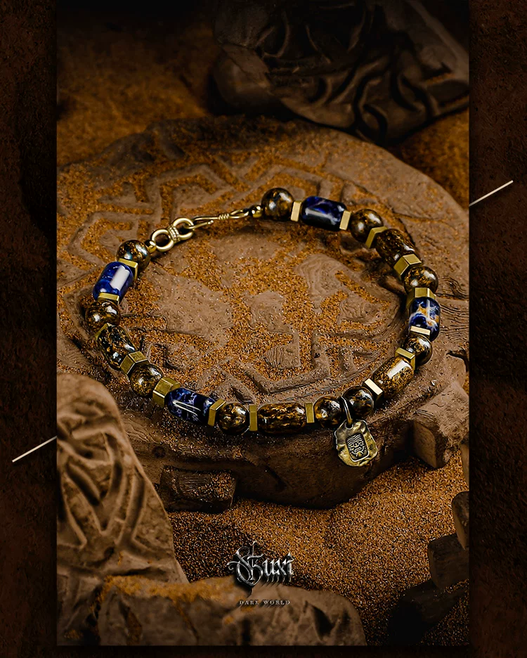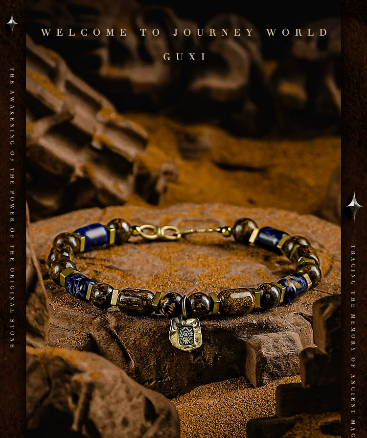 GUXI【铜踪】原创蓝纹石手链男小众设计复古扎基拉姆手串个性饰品