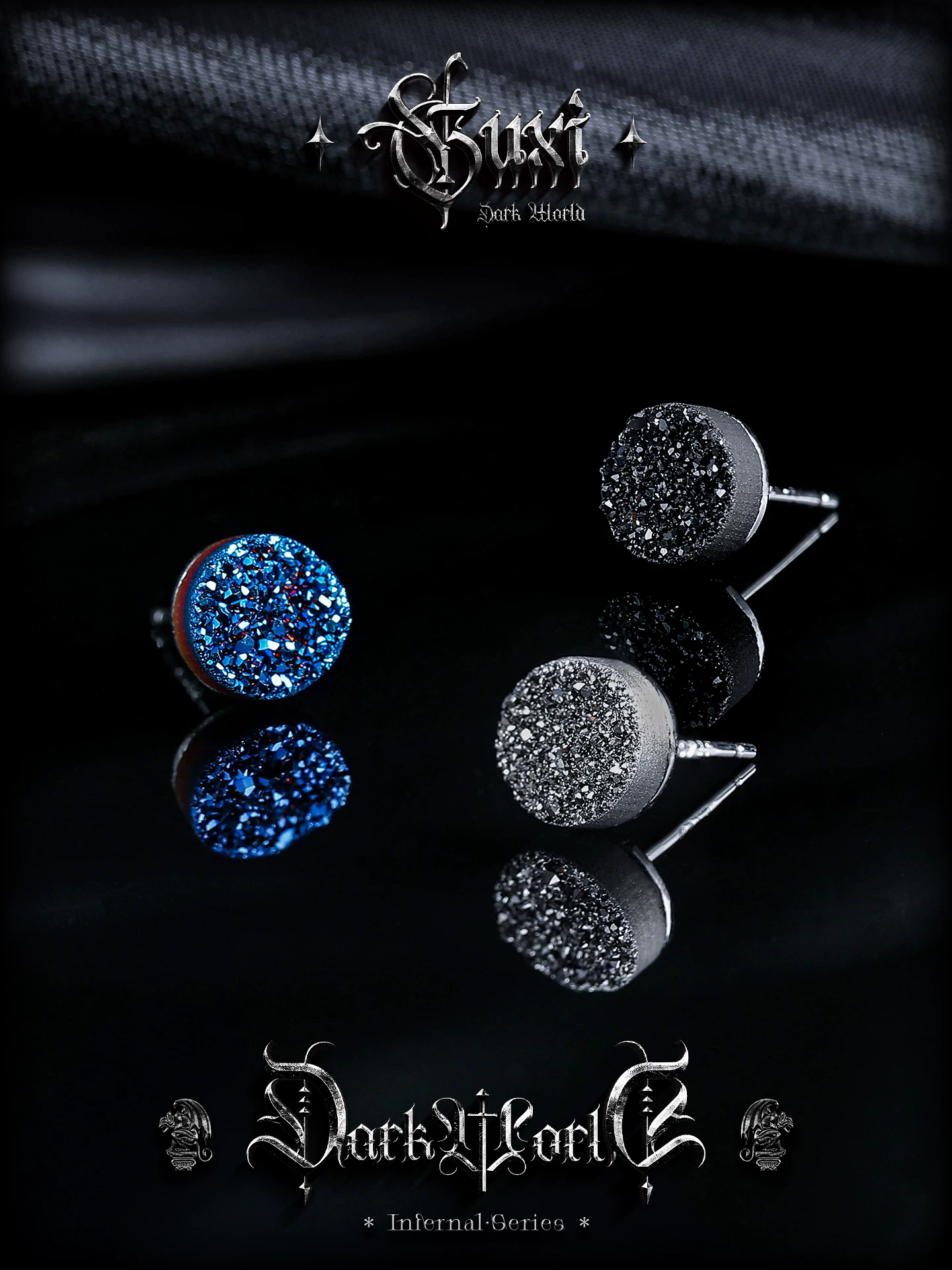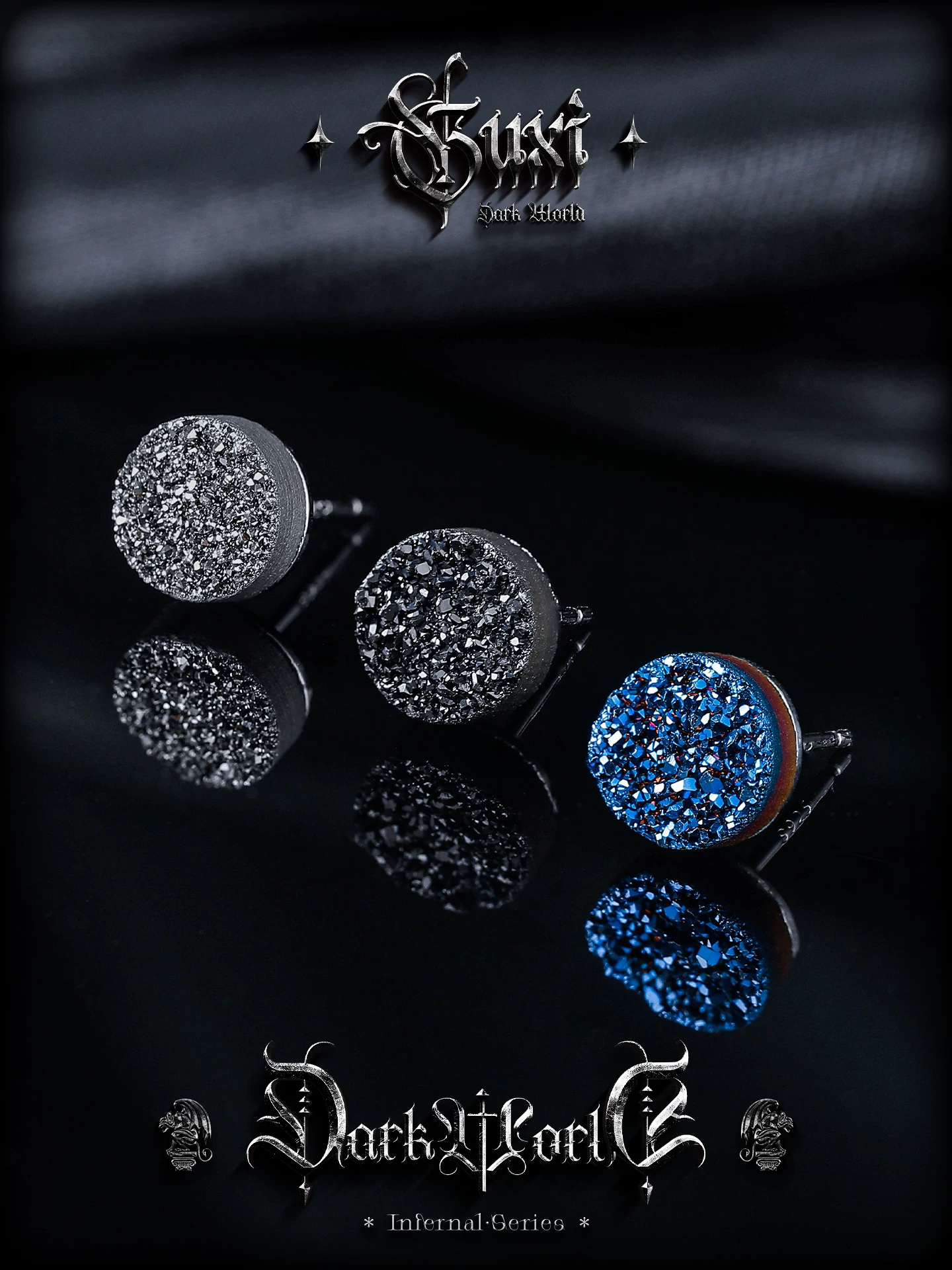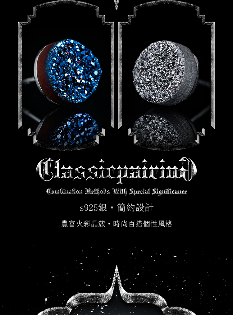 蓝色圆形晶簇款(单只), 银灰色圆形晶簇款(单只), 黑色圆形晶簇款(单只)