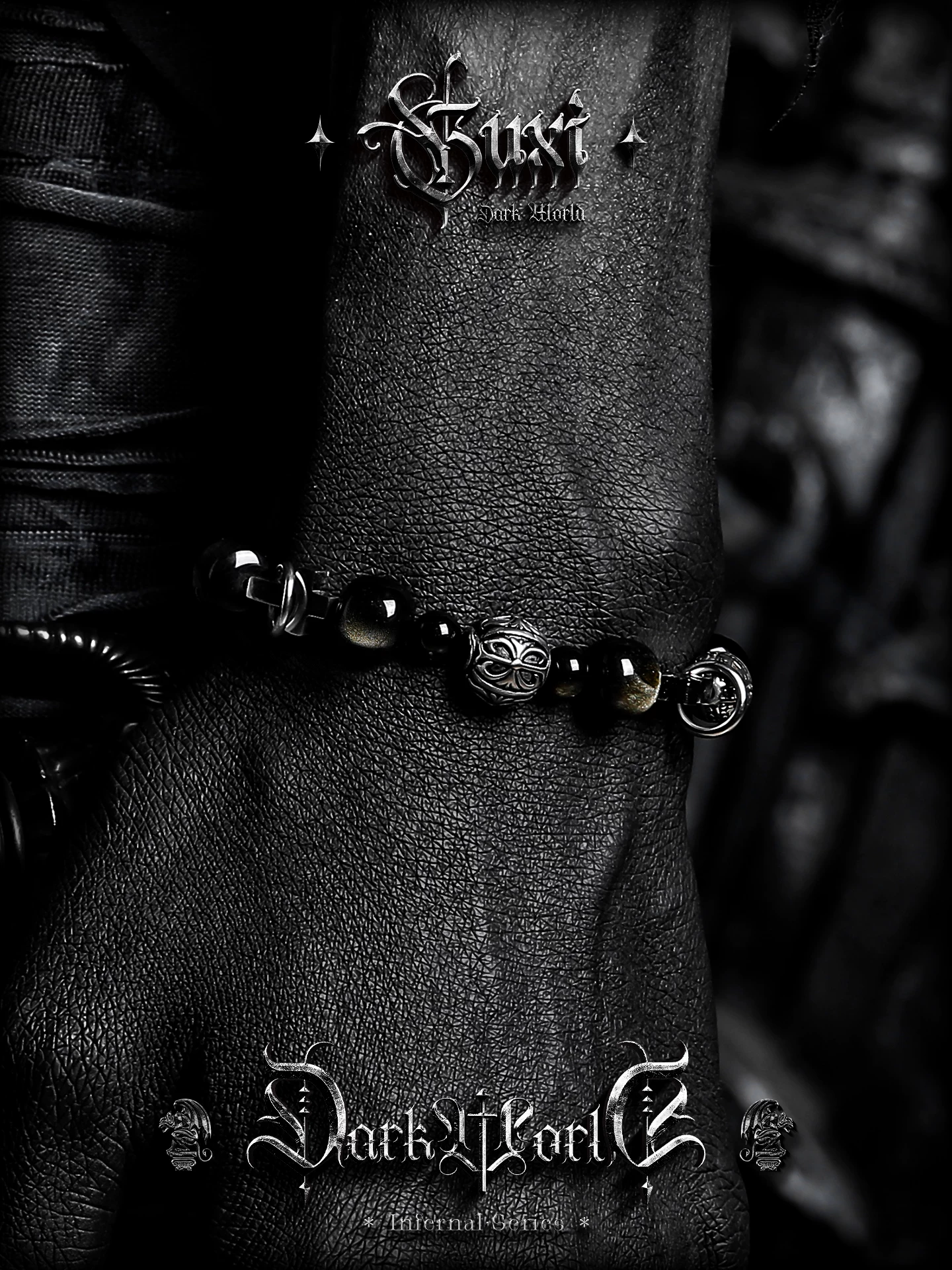 GUXI【陌渊】原创设计金黑曜石手链男手串珠个性复古小众饰品礼物