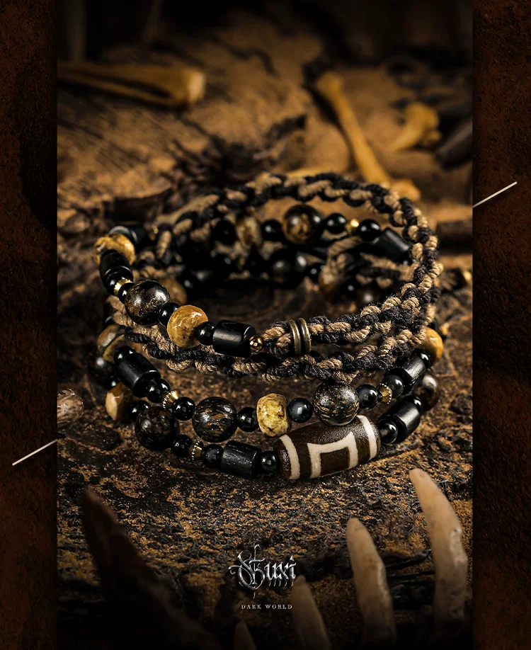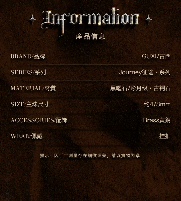 是第一个审查"GUXI【隐士】黑曜石手链男古铜石手串珠复古饰品小众叠戴编织手绳"