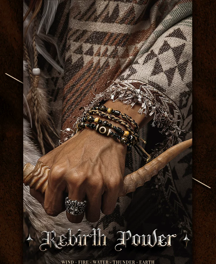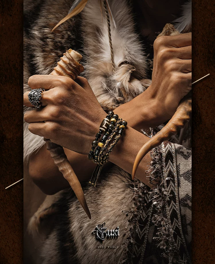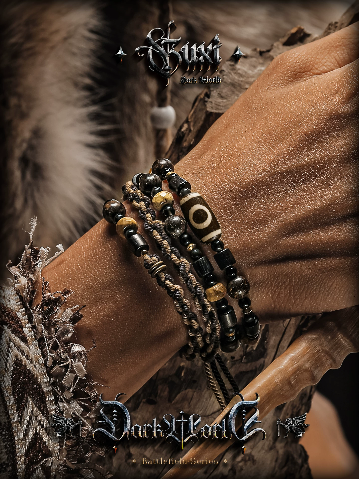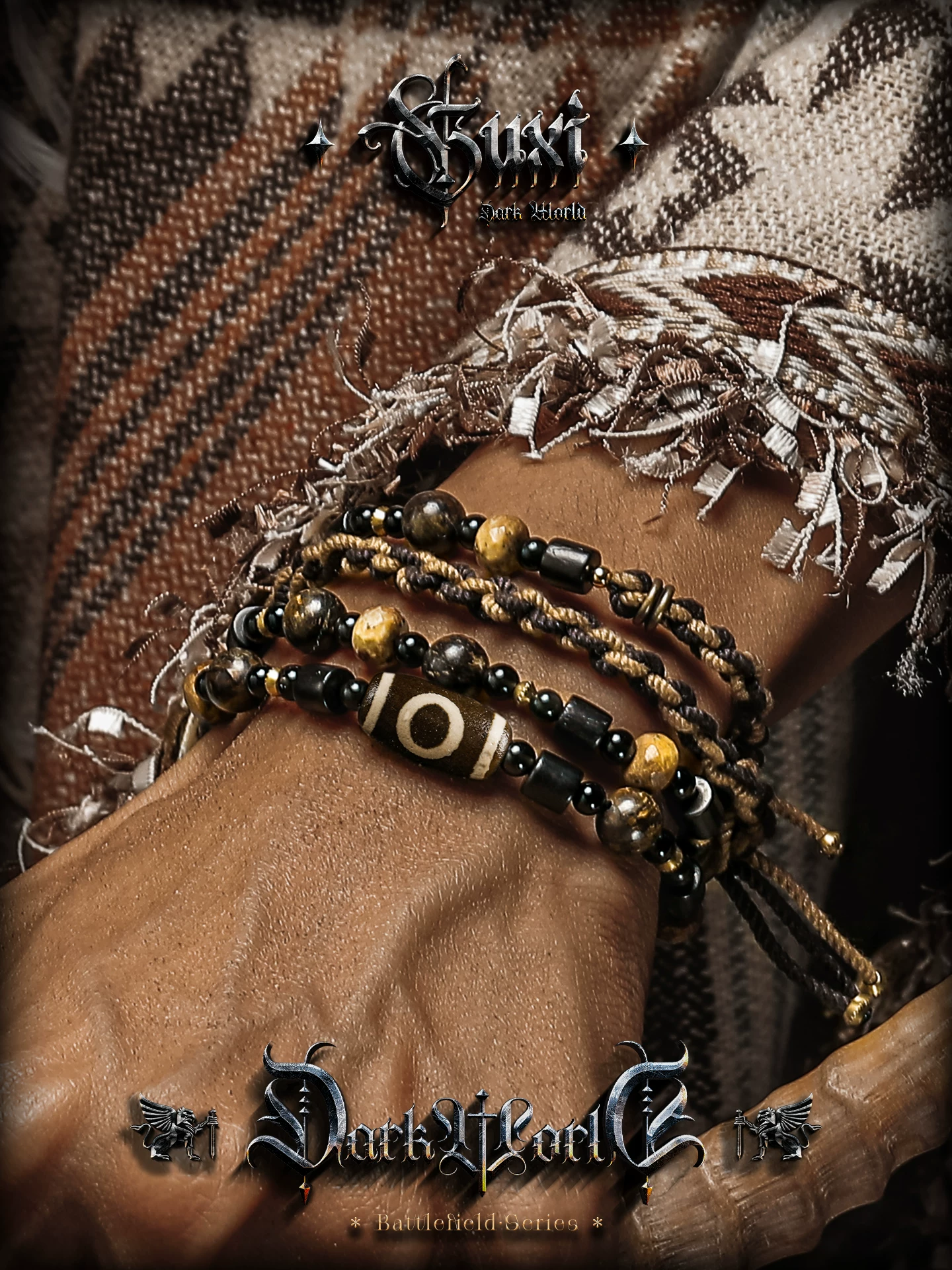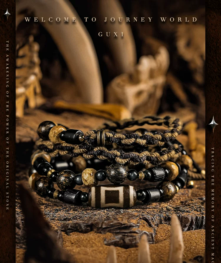 GUXI【隐士】黑曜石手链男古铜石手串珠复古饰品小众叠戴编织手绳