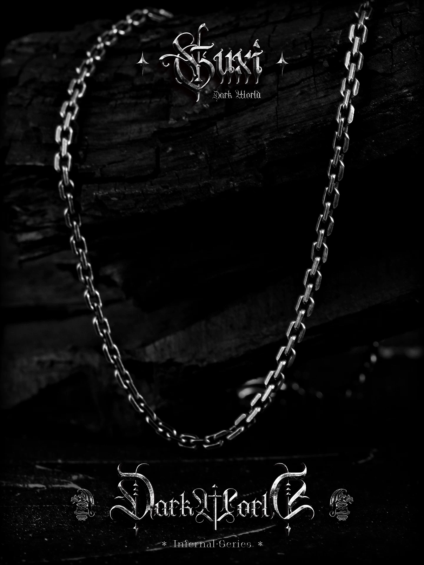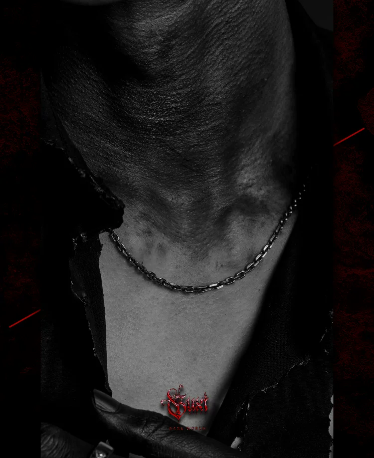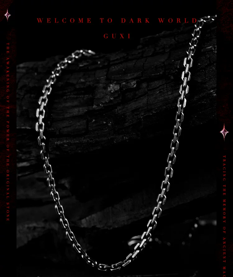 GUXI【风蚀】暗黑风925银项链男复古做旧太角链简约个性百搭素链
