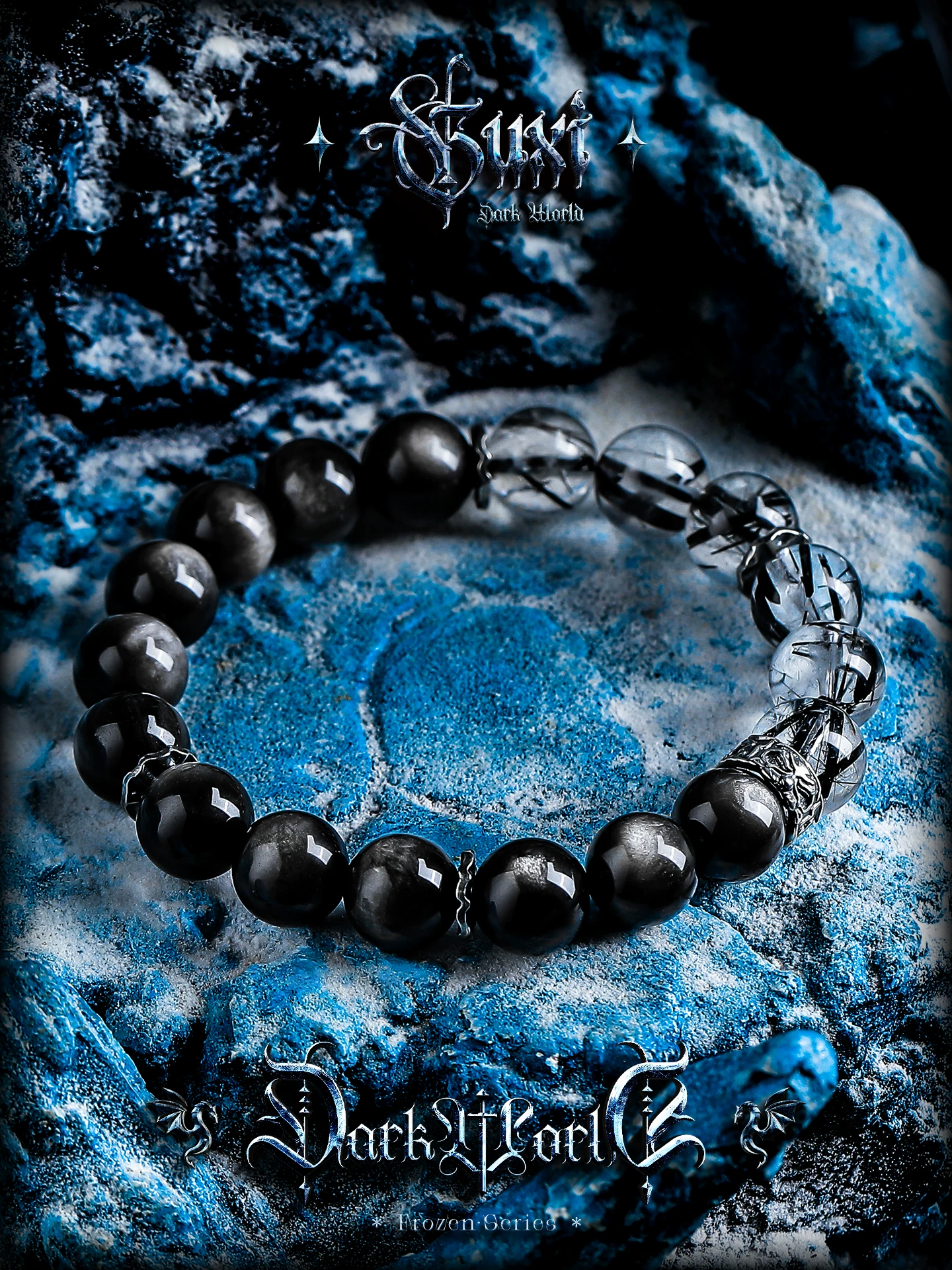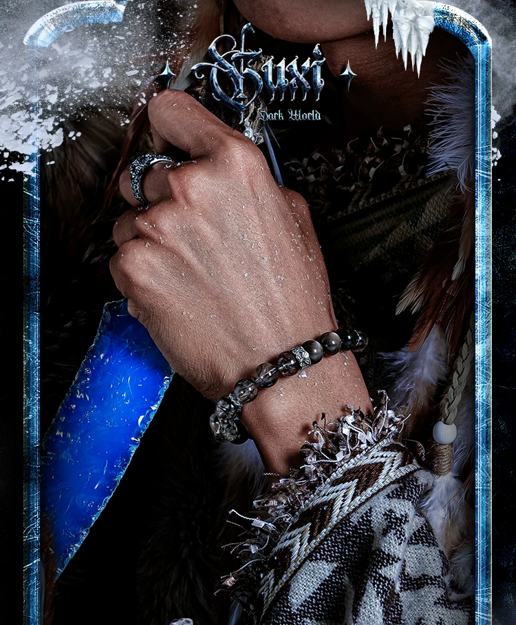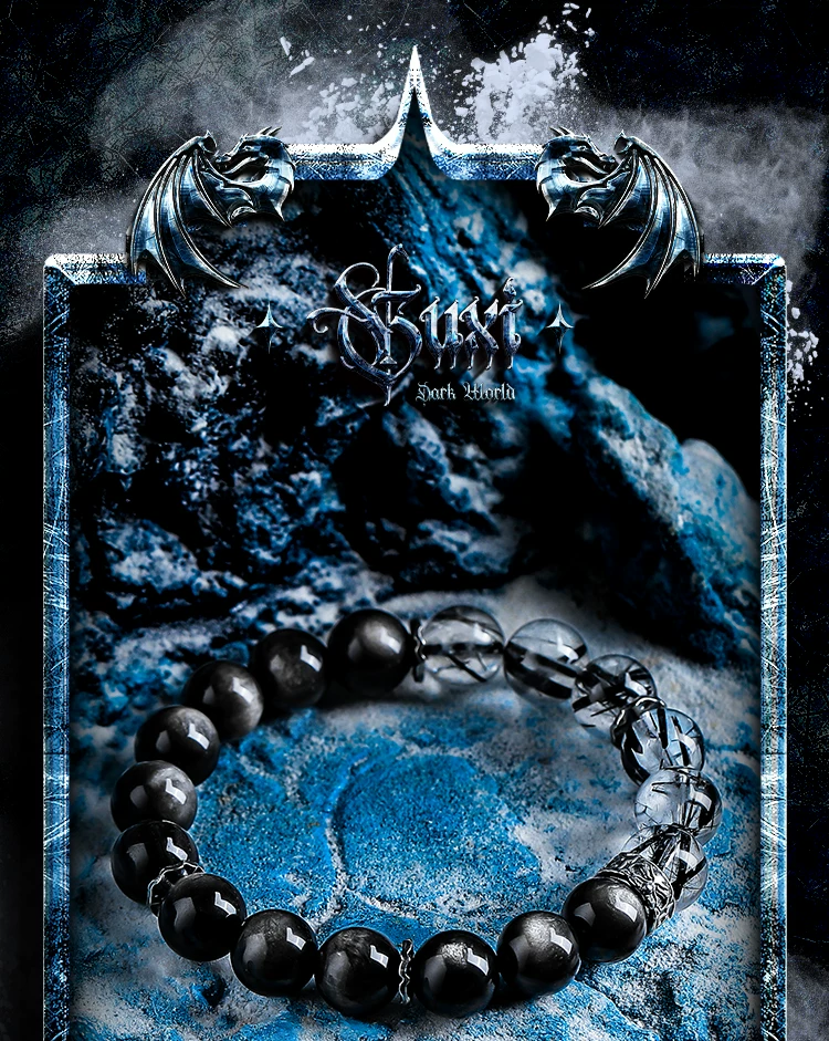 是第一个审查"GUXI【魔影】银黑曜石手链男复古黑发晶手串百搭水晶串珠轻奢小众"