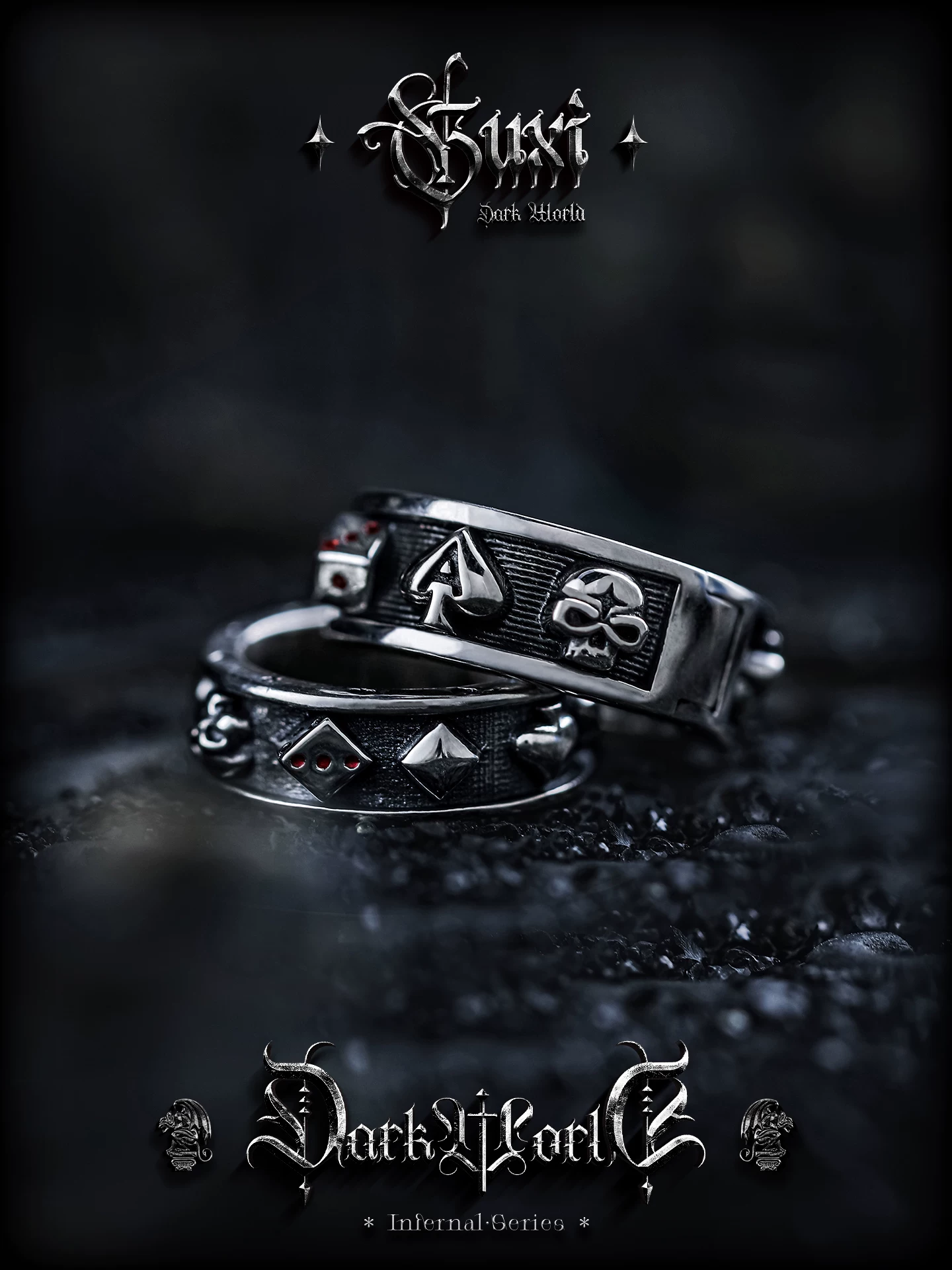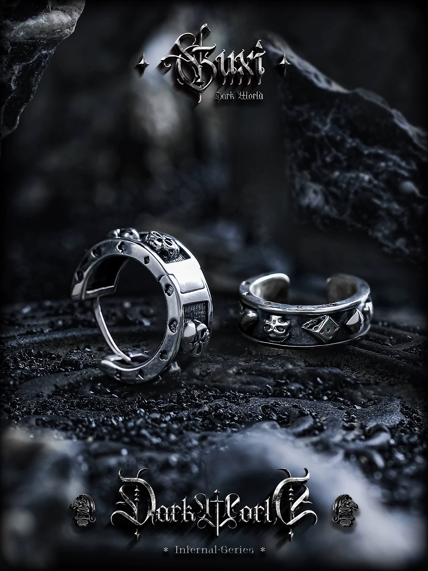 GUXI【黑暗公馆】暗黑风925银耳钉男无耳洞耳夹复古耳扣小众耳环
